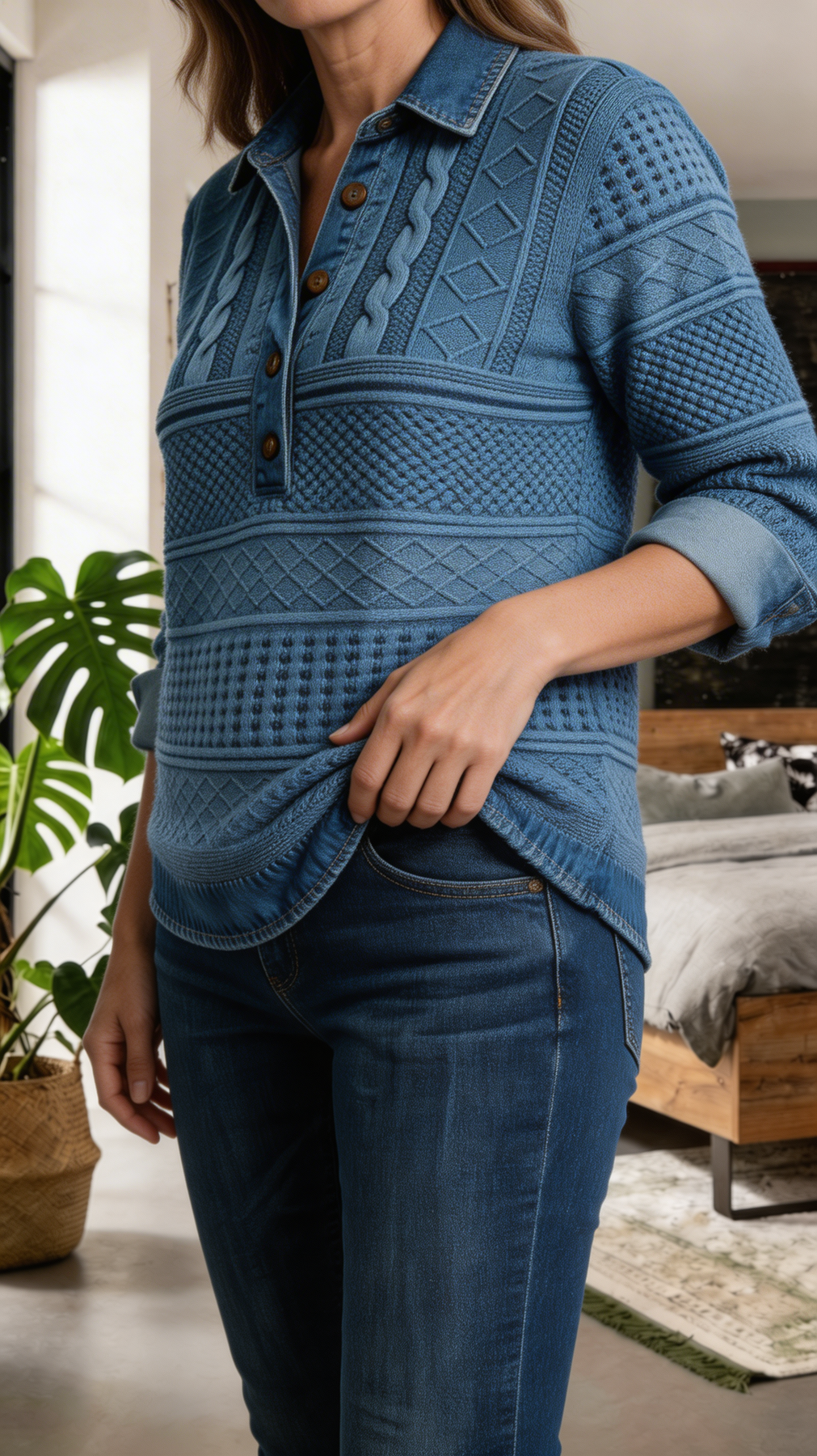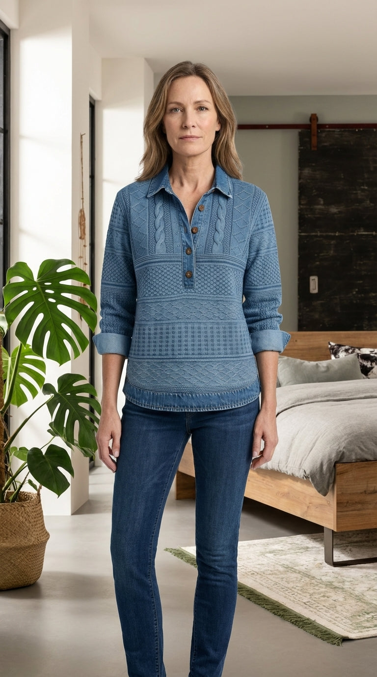Combínala con jeans y botines para un look casual, o llévala bajo una blazer para un conjunto más pulido.